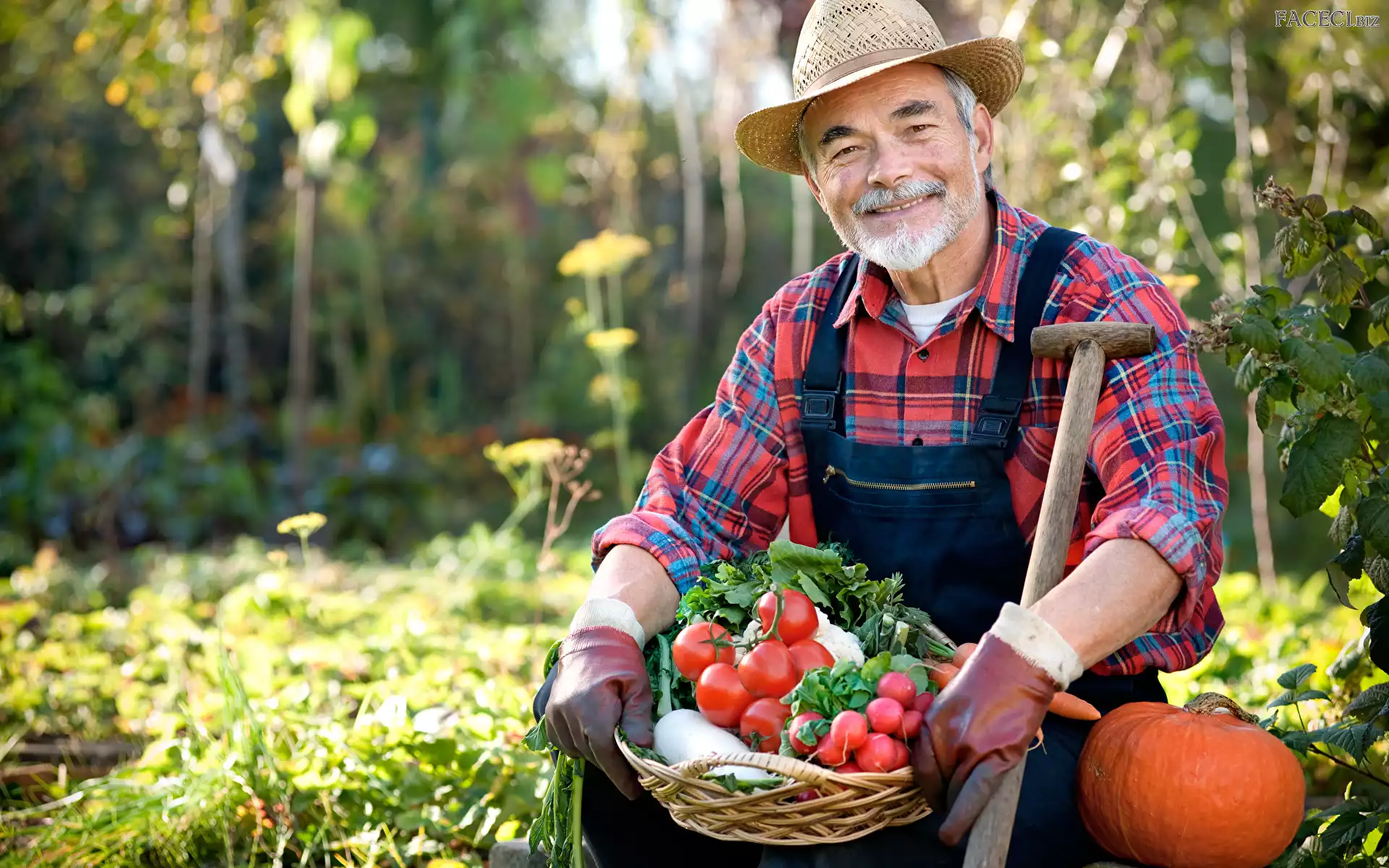 Dynia, Pomidory, Kapelusz, Mężczyzna, Koszyk - faceci.biz